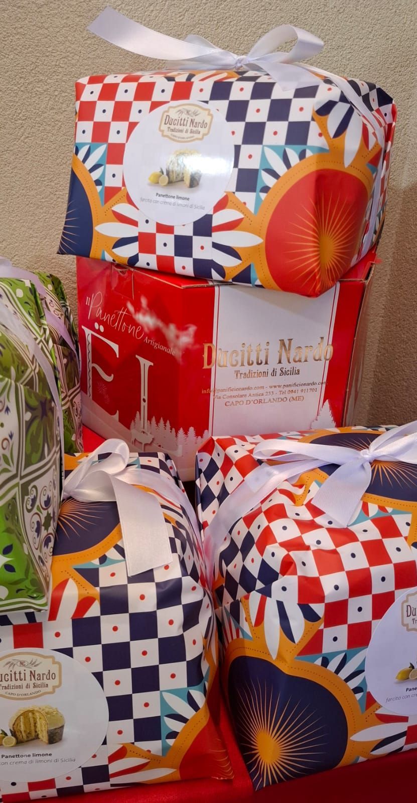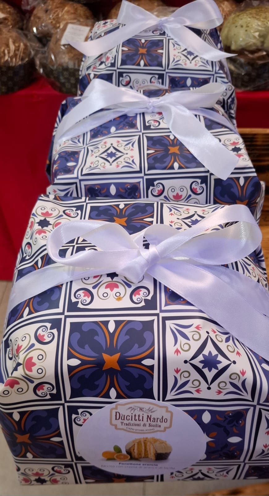 Panettoni Artigianali del Panificio Nardo sono arricchiti con ingredienti selezionati e lavorati con pazienza, per trasformare ogni celebrazione in un momento di dolcezza indimenticabile. Sono disponibili nei seguenti gusti : cioccolato , tradizionale con glassa di mandorla (uvetta e canditi), pistacchio con apposita crema , limone , arancia , mandarino . Perle vostre spedizioni vi consigliamo di effettuare le apposite ordinazioni non oltre